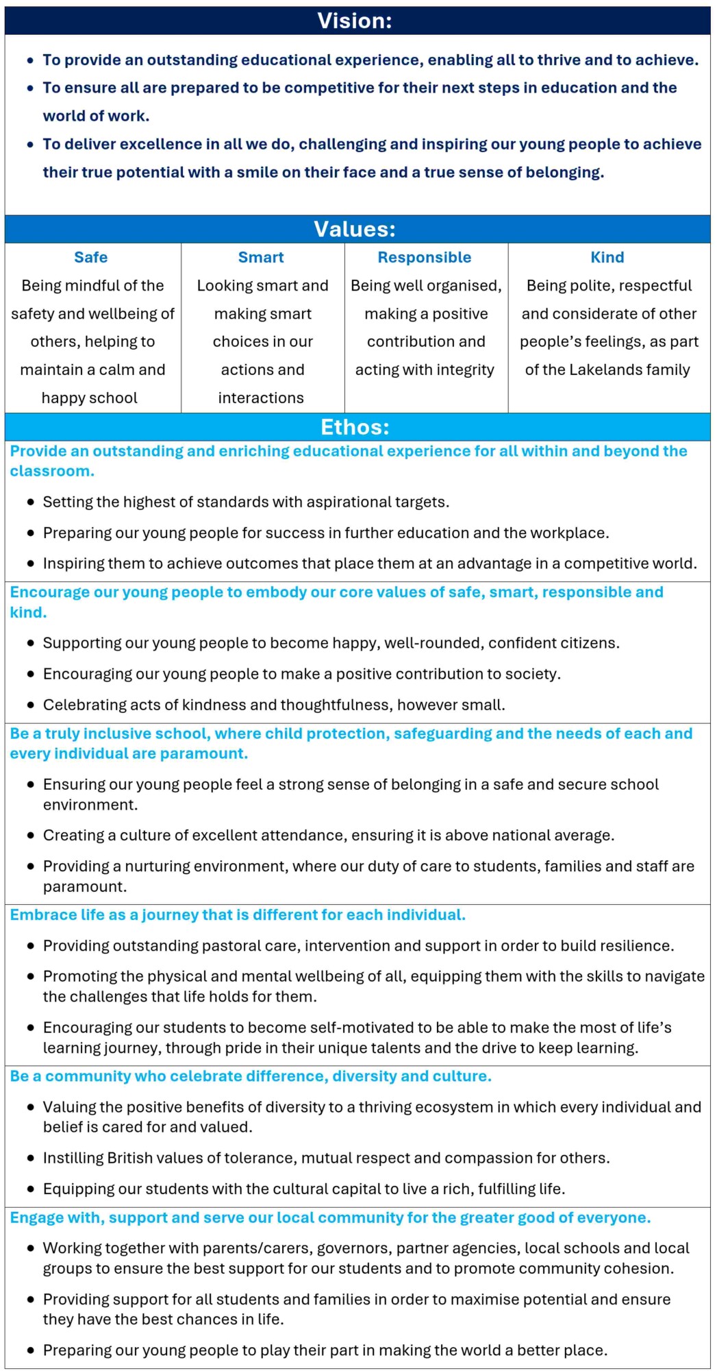 » Vision, Values and Ethos